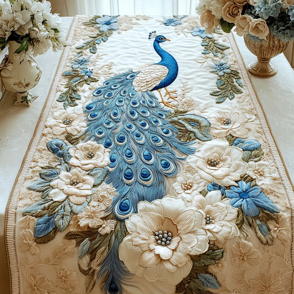 Serene Blue Peacock Quilted Table Runner 🦚💙✨