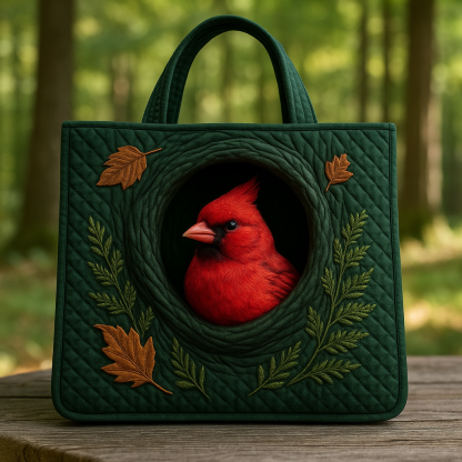 Marivn® Cardinal Bird Forest Window Quilted Tote Bag
