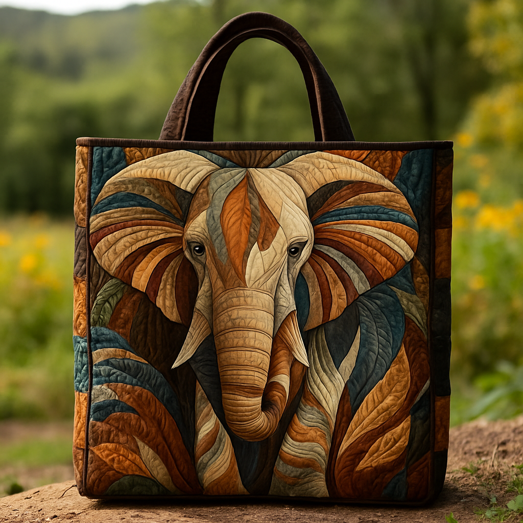 Wild Harmony Elephant Quilted Tote Bag – 3D Embroidery Art